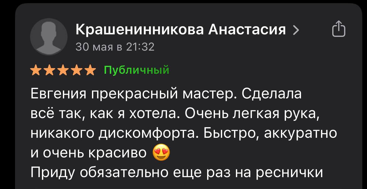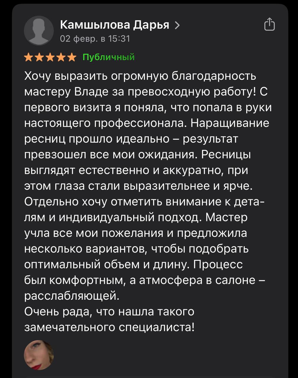 ТОП-мастер по наращиванию ресниц и оформлению бровей, в проффесии более 10 лет, мастер с колоссальным опытом и безупречным вкусом